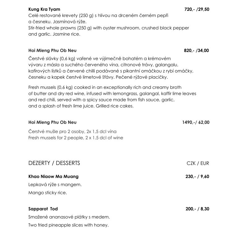 Speciální Silvestrovské MENU Lunch Menu 30. - 31. prosince 2025 a 1. ledna 2026 Užijte si naše speciální menu na poslední dva dny roku 2025 a ten první roku 2026, v tento den od 15:00 -22:00. Special menu